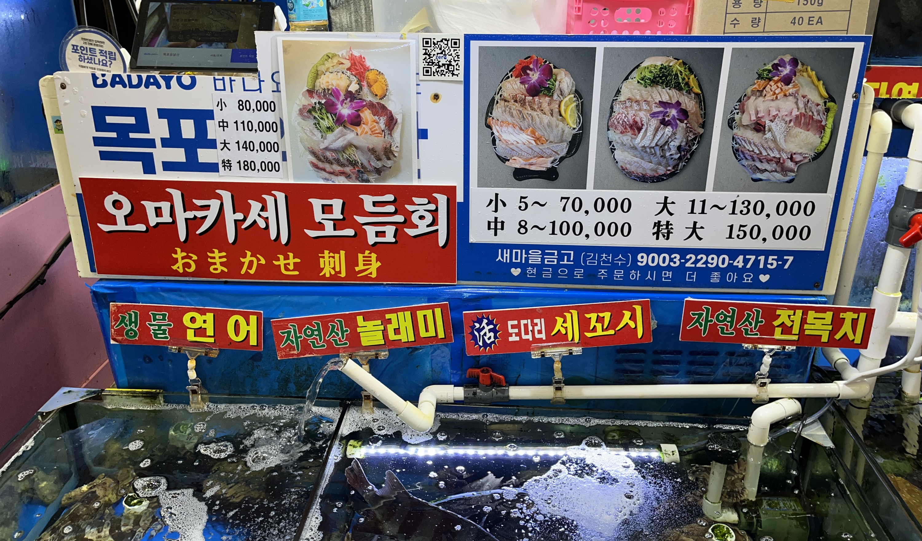 많은 횟집이 다 호객행위를 하시느라 바빴고