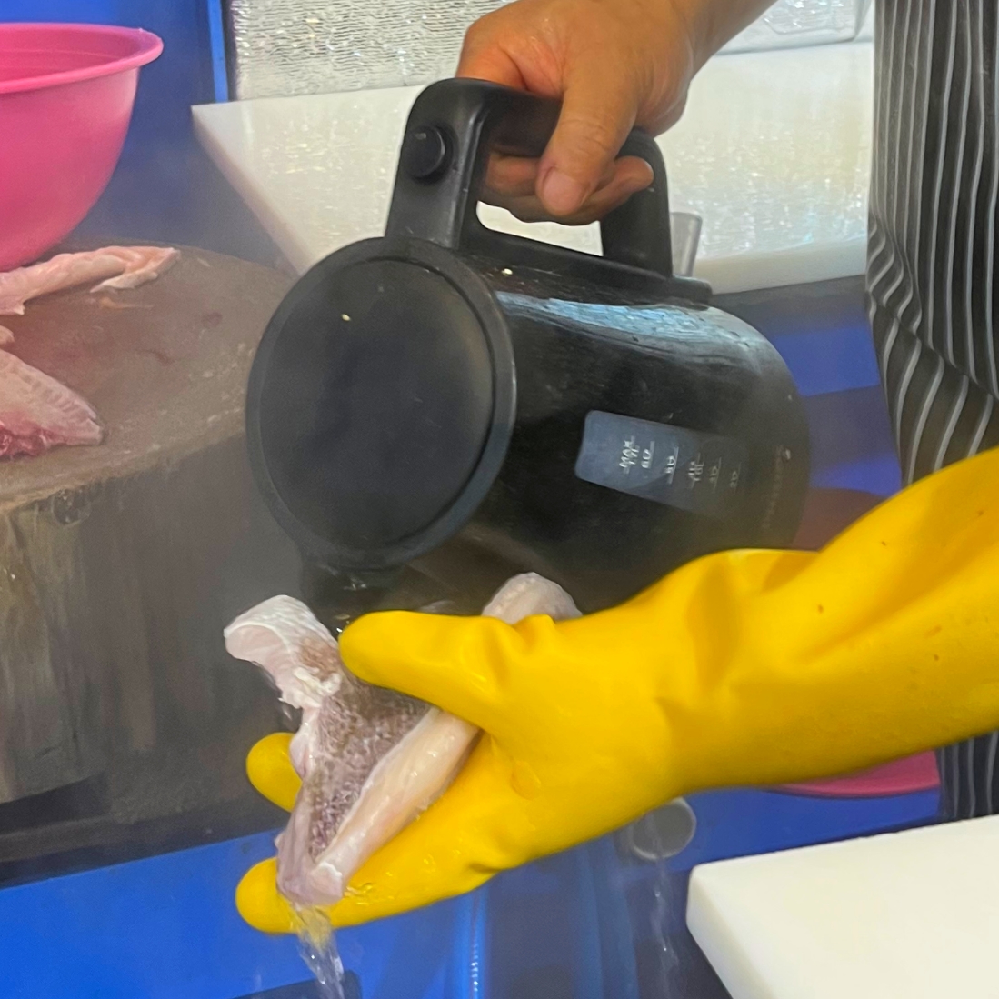 껍질 부분은 펄펄 끓는 물에 데친 후