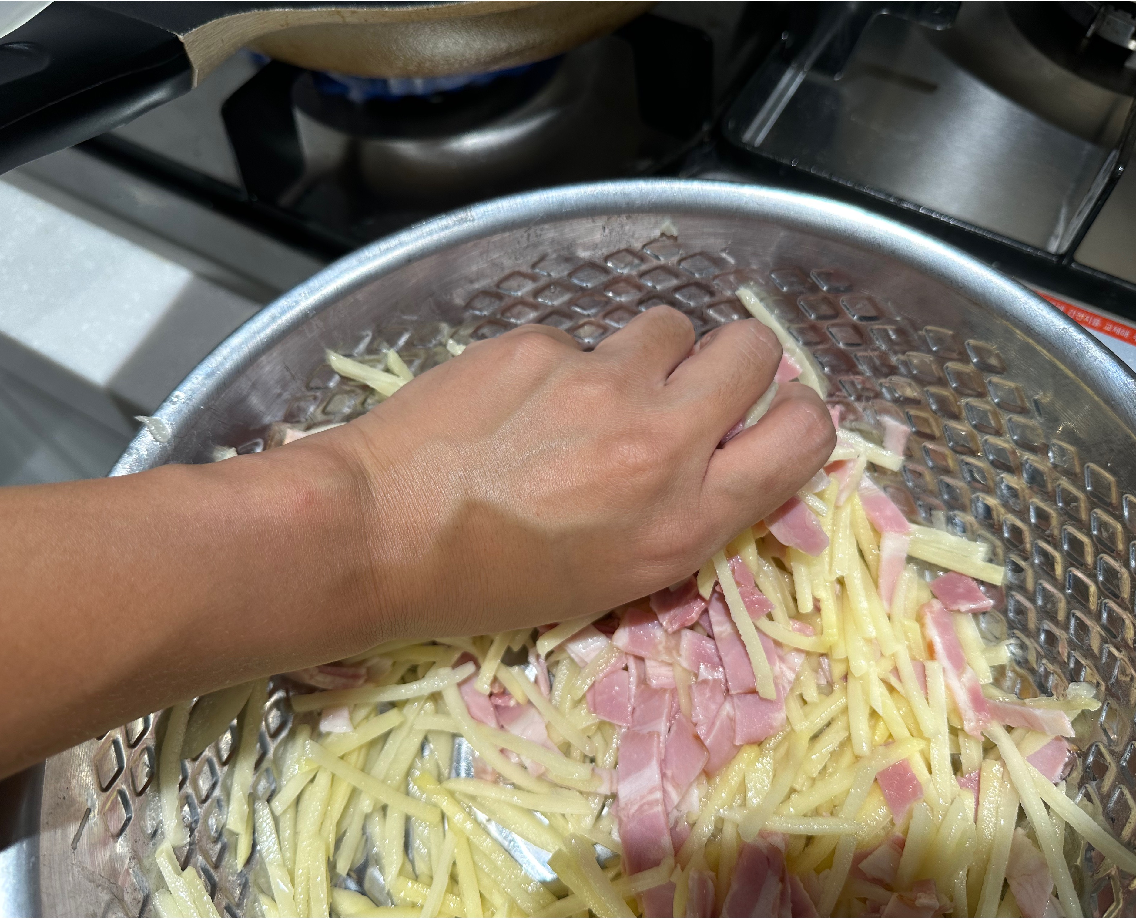 3. 감자/베이컨을 잘 섞어준 뒤 물기를 대충 짜내준다